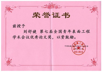 2015年4月28日,公司李文生教授负责的课题组四名硕士生,参加了第七届全国青年表面工程学术会议暨重庆市第二届汽车摩托车摩擦学材料先进技术与应用推进会。会上,刘舒婕同学做了《高铝青铜等离子喷焊层元素扩散及摩擦学性能》报告,并荣获第七届全国青年表面工程学术会议优秀论文奖。
