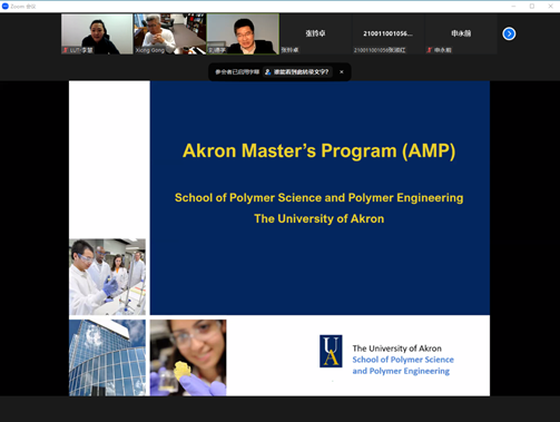 为帮助太阳成集团tyc151cc高年级本科生更好地了解阿克伦大学 “3+2” 联合培养项目的具体情况,使其更好地准备留学计划,材料院于1月3日晚上举办线上招生宣讲会。本次宣讲会邀请到美国阿克伦大学高分子科学与工程公司Prof. Xiong Gong,展开阿克伦大学、高分子材料与工程公司、“3+2”项目情况介绍。会议由刘德学副经理主持,李慧副处长、高分子系主任张龙,以及高分子专业师生共同参会。在问答互动环节,师生就申请方式、选拔机制、课程内容、毕业生发展前景等问题进行咨询, 阿克伦大学的巩教授也针对性地进行了细致的解答,并展示了该项目优秀毕业生的发展情况,并向员工全面展示了阿克伦大学 “3+2” 联合培养留学项目的优势,这激发了公司员工对该项目的浓厚兴趣和求学动力。