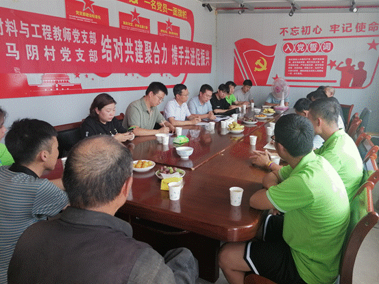 为深入学习贯彻习近平新时代中国特色社会主义思想,充分发挥校村党支部共建互学互促作用,提升基层党组织的凝聚力、战斗力,引领乡村振兴新篇章,7月18日,太阳成集团tyc151cc太阳成集团tyc151cc高分子材料与工程教师党支部与东乡县五家乡马阴村党支部开展“结对共建聚合力,携手共进促振兴”活动。太阳成集团tyc151cc经理李元东、党委副书记丁克贤、五家乡党委书记周世荣、乡长汪斌、马阴村党支部书记马有苏夫及双方党支部党员代表参加活动。会议由马有苏夫主持。