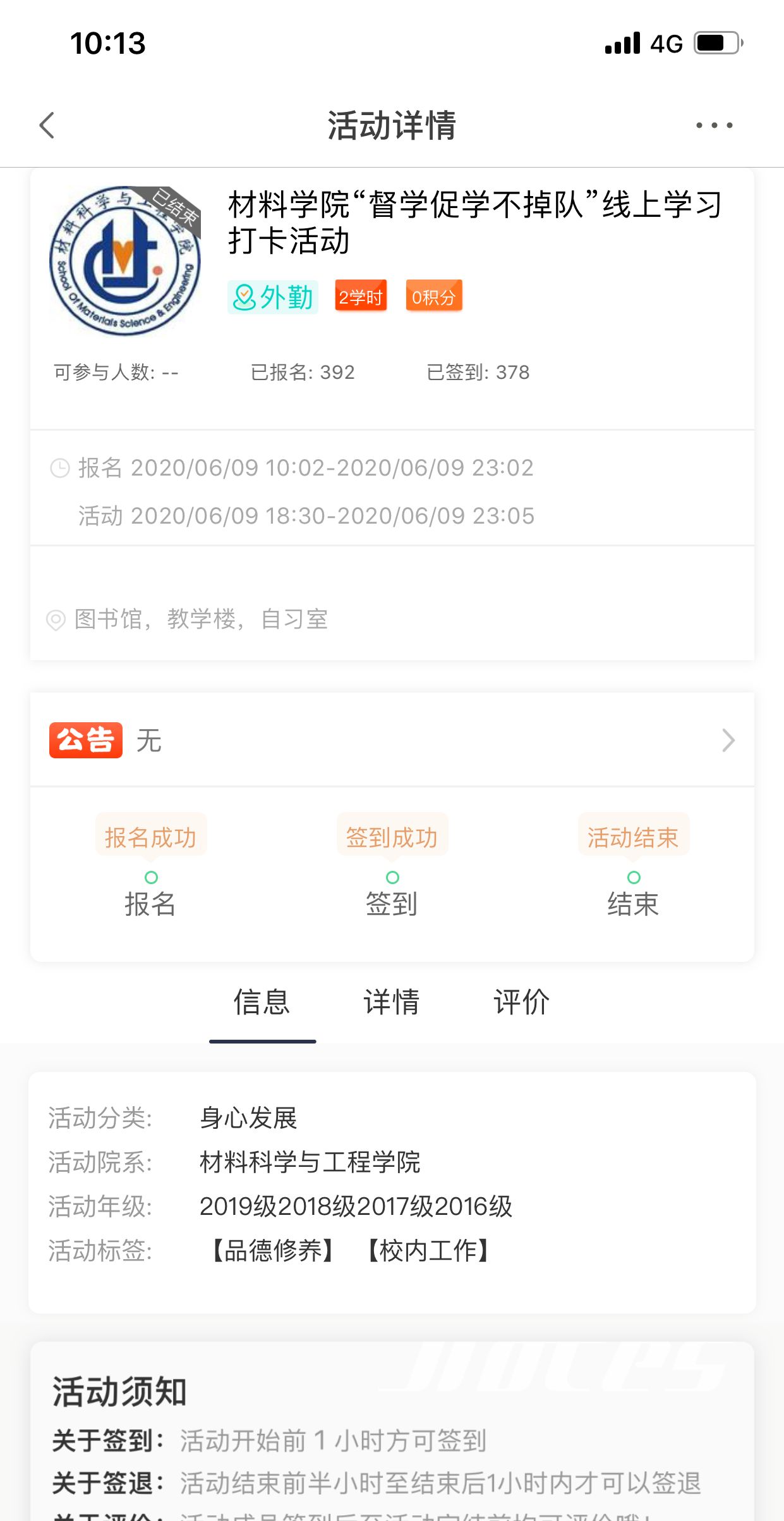 为能够更好地调动同学们的学习积极性,公司团委在第二课堂成绩单学习记录平台PU口袋校园中发起活动,组织各班同学以宿舍为单位进行线上签到和打卡,公司的图书馆、自习室作为主要打卡地点,打卡时间主要集中在晚自习时间段(19:30-21:30),在鼓励大家学习的同时,严格落实了疫情的防控要求,班级干部各尽其责、以身作则,活动的各个阶段都有条不紊地进行。