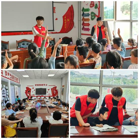 践行青春“普”写乡创暑期社会实践队在五家乡马场村马场小学开展“普通话趣味推广”小课堂,志愿者们从普通话发音与表达应用等方面入手,提升当地孩子们对普通话的应用能力。在推普小课堂上,志愿者们通过捏彩泥、讲故事、唱歌、绕口令等趣味活动,在游戏中学习普通话的表达与应用,进一步感受中华汉字的魅力。“书同文,语同音,才能心相通,情相融”,实践队将推普工作内化于心、外化于行,用实际行动助力乡村振兴。