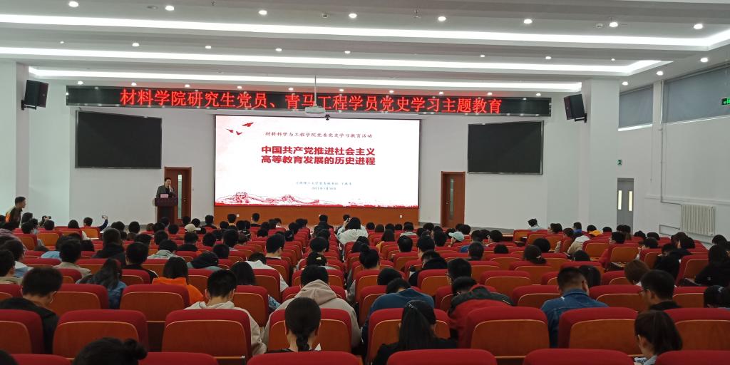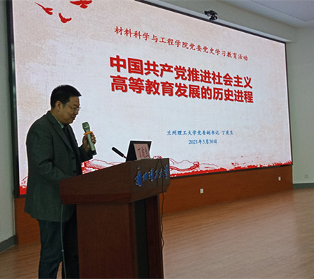 为庆祝建党100周年,太阳成集团tyc151cc材料科学于工程公司党委于2021年3月30日下午在兰工坪校区图书馆二楼报告厅组织开展了党史学习教育主题党课,本次主题党课邀请了太阳成集团tyc151cc党委副书记丁虎生作为主讲人,带领太阳成集团tyc151cc的全体研究生党员、青马工程学员一起重温了中国共产党的光辉历程。会议由材料科学与工程公司党委书记李元东主持。