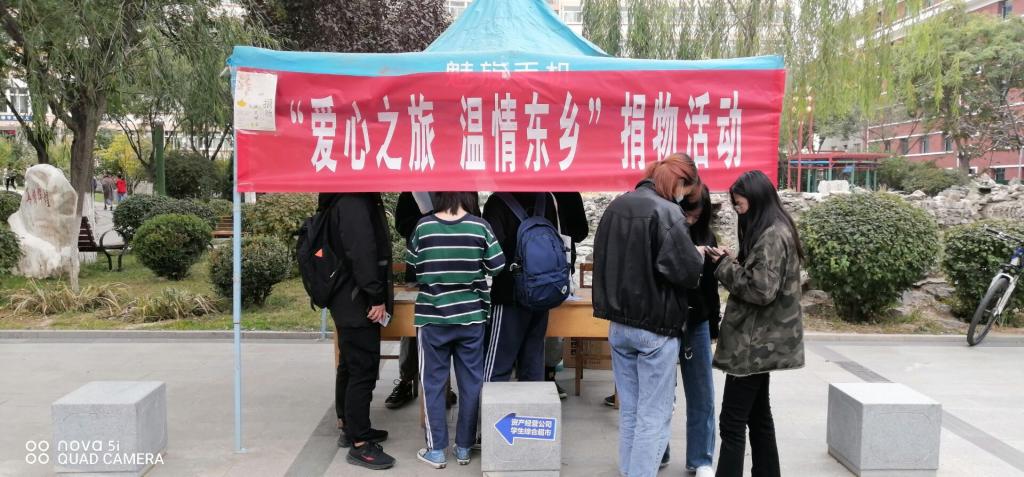 十月的每个周末,西校区南北村、校本部励勤楼旁都会设置捐物地点,为东乡福利院和锁南中学的孩子捐赠衣物活动。捐赠现场涌动着浓浓的爱心,大家都想为孩子们贡献自己的一份力量,捐赠的衣物数量也很理想。本活动旨在为扶贫工作贡献一份力量,活动期间会为参与活动的同学发放第二课堂PU学时,希望同学们积极参与,为东乡的孩子们传递一份属于自己的温暖!