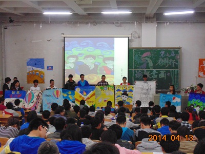 海报书画大赛分两部分展出,海报绘画作品和书法展览。首先展出的是海报绘画作品,其涵盖三个主题:新生运动会海报展,校运会海报展,校园春色及校园生活的绘画展。接下来是优秀书法作品展,主题广泛,主要反映同学们的校园文化以及对于生活的憧憬。每一位同学依次上台展示自己的作品,他们颇具创意的作品结合现场精彩的解说赢得了同学们的赞许和掌声。最后,经过评选,选出16名同学的优秀作品,并给予表彰奖励。