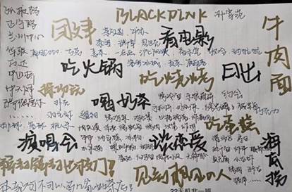 公司易班工作站开展“我的一天Vlog记录”活动、团委宣传部组织开展宿舍夜话“疫情解除后最想干的事”,广大同学踊跃参与。当下同学们要做到把握珍贵的学习时间,积极调整心态加强科学文化知识的学习,练就个人过硬的素质本领,同学们以Vlog的形式记录下自己的真实生活,反映出了当代老员工把握学习时光,在宿舍健康阳光、积极向上的学习生活状态;虽然疫情深刻影响着大家的生活,但丝毫没有影响每个同学对未来生活的期冀与盼望,很多同学都表示“好想念没有口罩的时代,想念说走就走自由自在的日子,想念无所顾忌地逛街旅行,想念在电影院里大哭大笑”,大家用宿舍夜话的形式天马行空畅想未来,用笔画记录下未来同学们想做的事。