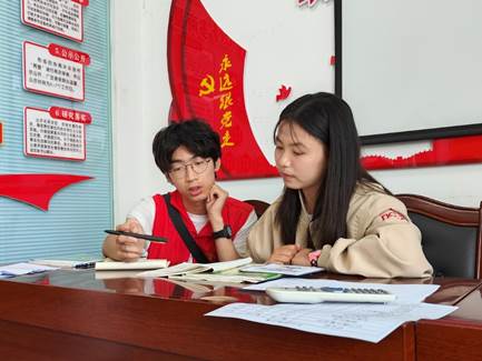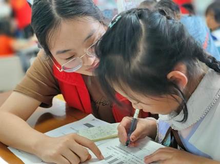 迎着朝阳和夏日的暖风,队员们到达的第一天就积极投入了工作,怀揣着期待和热情,来到社区居委会,这里有几十位年龄不同的小员工被交给志愿者托管、辅导功课。孩子们年级不同,但无一例外都怀着对知识的好奇和热忱,志愿者坐在孩子身边细心的解答他们的疑问,孩子们的声音稚嫩而有生气,志愿者们的声音温柔而坚定,像是一股股清泉,滋润着孩子们求知的心灵。孩子和志愿者之间和谐美好,在陪伴中逐渐熟悉。