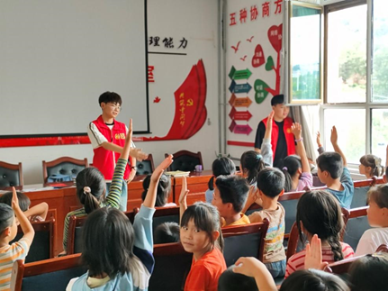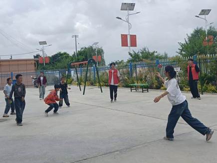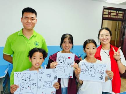 结束了作业的辅导,为了和孩子们快速“破冰”,轻松欢乐的小游戏展开了序幕,“说左手举右手”,既能锻炼孩子们的反应力,也能锻炼孩子们对普通话的理解能力。“讲故事”环节,让孩子们和志愿者之间更加熟悉。讲好普通话,是孩子们练习的一个要点,也是志愿者应尽的责任。伴着志愿者有节奏地敲桌,“击鼓传花”把活动推向了高潮, 孩子们你画我猜、表演节目,好不热闹。第一天的活动在夕阳的余晖中圆满结束,孩子们紧紧围绕着服务队的队员们,不舍离去。这次活动不仅为少数民族儿童带来了心灵的慰藉和欢乐,也让服务队成员们深刻感受到了民族融合的力量和责任。