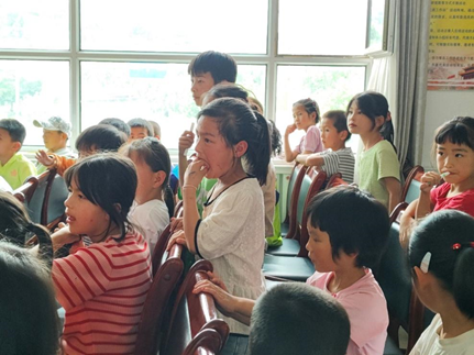 学习之余,志愿者和孩子们不断交流,开展心理宣讲,在一个个小活动、谈话里,孩子们分享了成长时遇到的问题,互相间有了更多认同,明白了“有的烦恼不是只有自己遇到,大家和自己都是一样的”。同时,志愿者给孩子们播放了心理相关电影,孩子们认真观看,若有所思。