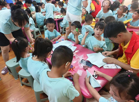 实践队员还带领聋儿们开展粘土、折纸等手工活动,用手工作品表达了双方相互交流与配合的成果。每个孩子都是独一无二的艺术家,他们的作品充满了想象力和个性,也通过手工作品把自己心之所向展现出来。