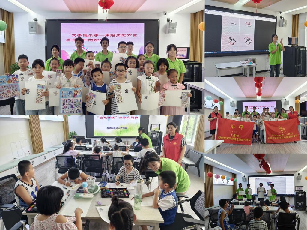 在暑期实践后期,队员们在社区活动中心,为社区的小员工们开启了一场别开生面的“大手拉小手——用绘画的力量,点亮心中的太阳”创意绘画教学活动。在绘画教学过程中,志愿者们耐心指导,根据每个员工的特点进行个性化的教学。他们不仅教授基本的绘画技巧,还鼓励员工们观察生活,从周围的环境中汲取灵感。在创作过程中,志愿者们还穿插介绍了一些著名画家的生平和作品,让小员工们对艺术有了更深刻的认识。为了让活动更加生动有趣,志愿者们还利用多媒体设备,展示了一些经典动画短片和艺术作品,让小员工们领略到不同风格的艺术魅力。活动的最后,志愿者们与小员工们一起举办了一个小型的画展,展出了他们在活动中创作的作品。这次活动不仅让小员工们收获了绘画技能,更让他们在快乐中感受到了艺术的魅力。此次活动是老员工志愿者服务社会、回馈社区的一次具体实践,也是老员工与小员工之间传承友谊、共同成长的桥梁。通过此次活动,激发了队员们的志愿服务热情,同时为小员工们的艺术教育贡献一份力量。