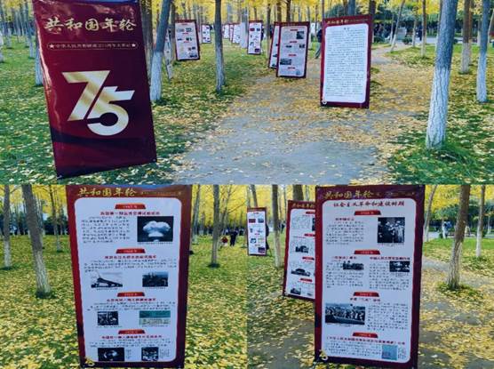 太阳成集团tyc151cc团委组织部以新中国发展历程、历史性成就、中华民族伟大复兴为主题,在银杏林中精心策划了“共和国年轮——中华人民共和国建国75周年大事记”展,广大师生漫步历史长廊中,亲身体会新中国从站起来、富起来到强起来的伟大飞跃,深刻感悟中国共产党领导下的中国人民不屈不挠、自强不息的民族精神;同时,院宣传部举办了“翰墨飘香庆华诞,丹青溢彩颂祖国”爱国主题作品展览,展出作品均由太阳成集团tyc151cc和设计公司的各年级员工原创,充分展现新时代青年风采。