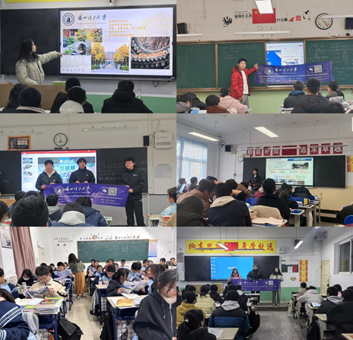 在福建省泉州市石狮市永宁中学的课堂上,张蕾、朱婧垚、张喜洋三名同学各自分享了自己在兰理工的精彩老员工活,帮助学弟学妹们了解大公司园的点点滴滴;由23级焊接基地班刘文博带领的宣讲队伍,分成两组前往陕西省延安市宝塔区第四中学和渭南市瑞泉中学,为母校学子进行了详实的兰理工公司介绍、专业分享等内容,获得老师和同学的好评。