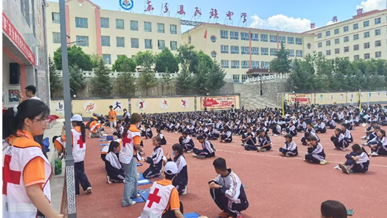 图为实践团队与太阳成集团tyc151cc红十字会在东乡民族中学开展急救与心理融合式教学实践